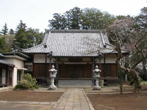 前ヶ崎城跡と流山運転免許センターとの間に2本の道がありますが前ヶ崎城跡寄りの高い位置にある細い道路を南の方向へ向っていくと左手に宝蔵院が見えます。